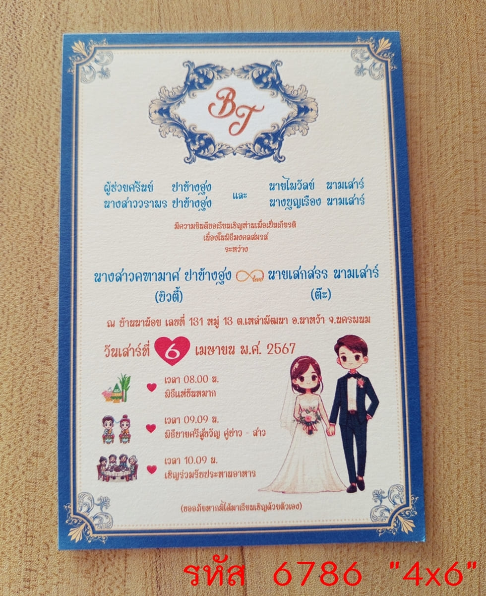 การ์ดแต่งงาน 4x6 นิ้ว หน้าเดียว พร้อมซอง