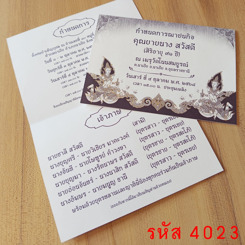 การ์ดพิมพ์การ์ดงานฌาปนกิจ การ์ดพิมพ์การ์ดงานศพ ขนาด 5x7 นิ้ว แบบพับ พร้อมซอง