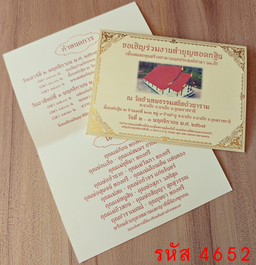 การ์ดพิมพ์ การ์ดงานทำบุญทอดกฐิน การ์ดงาน